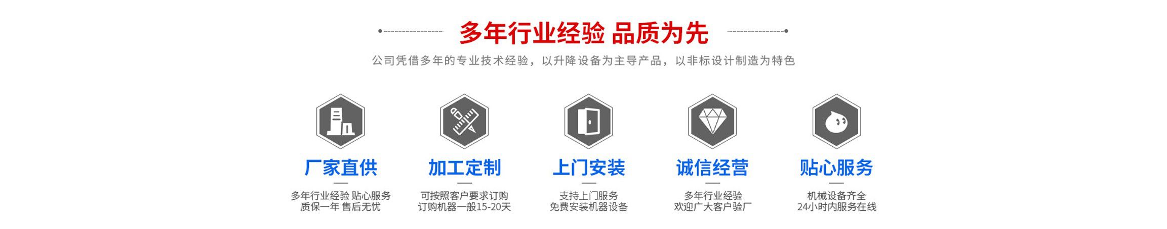 濟南翔宇升降機械有限公司是集研制、設計、開發、生產為一體的電動液壓升降平臺,液壓升降貨梯,升降機,移動升降機,貨梯,升降機廠家,升降平臺價格,升降平臺廠家專業生產企業。本公司生產設備精良,技術力量雄厚,工藝先進合理,檢測手段齊全,所有產品符合國家行業標準,全部產品已經通過國家特種設備檢測站檢測。公司生產的液壓升降臺,采用意大利、法國、德國液壓泵站系統,意大利液壓系統防爆裝置和液壓自鎖裝置嚴格按照國家標準。公司還可以根據用戶的需求設計制造包括特殊尺寸、承載能力、防爆電器的液壓升降臺?! 」緭碛幸慌鷥炐愕脑O計人才,其中僅高級技術人員就20多人,他們或是來自名牌高等院校,或是在長期實踐中精通了行業的先進技術,成熟中求創新,使得我們的產品處于不??;同時我們還擁有一大批技術熟練的產業工人,他們是保證高等級產品質量的關系因素?! 」窘涍^多年的對液壓升降設備的研制和探索,積累了豐富的專業技術和經驗,現已成為國內設備先進、產品齊全的液壓升降平臺,液壓升降機生產制造企業。目前公司產品有八大系列六十多個品種,產品質量符合JB/T9229.1(2.3)-1999標準。產品設計新穎、結構合理、升降平穩、操作簡單,廣泛應用于工礦企業、鐵路、公路、機場、郵電、石油、電力等部門的高空作業、安裝、維護;生產線上的貨物...